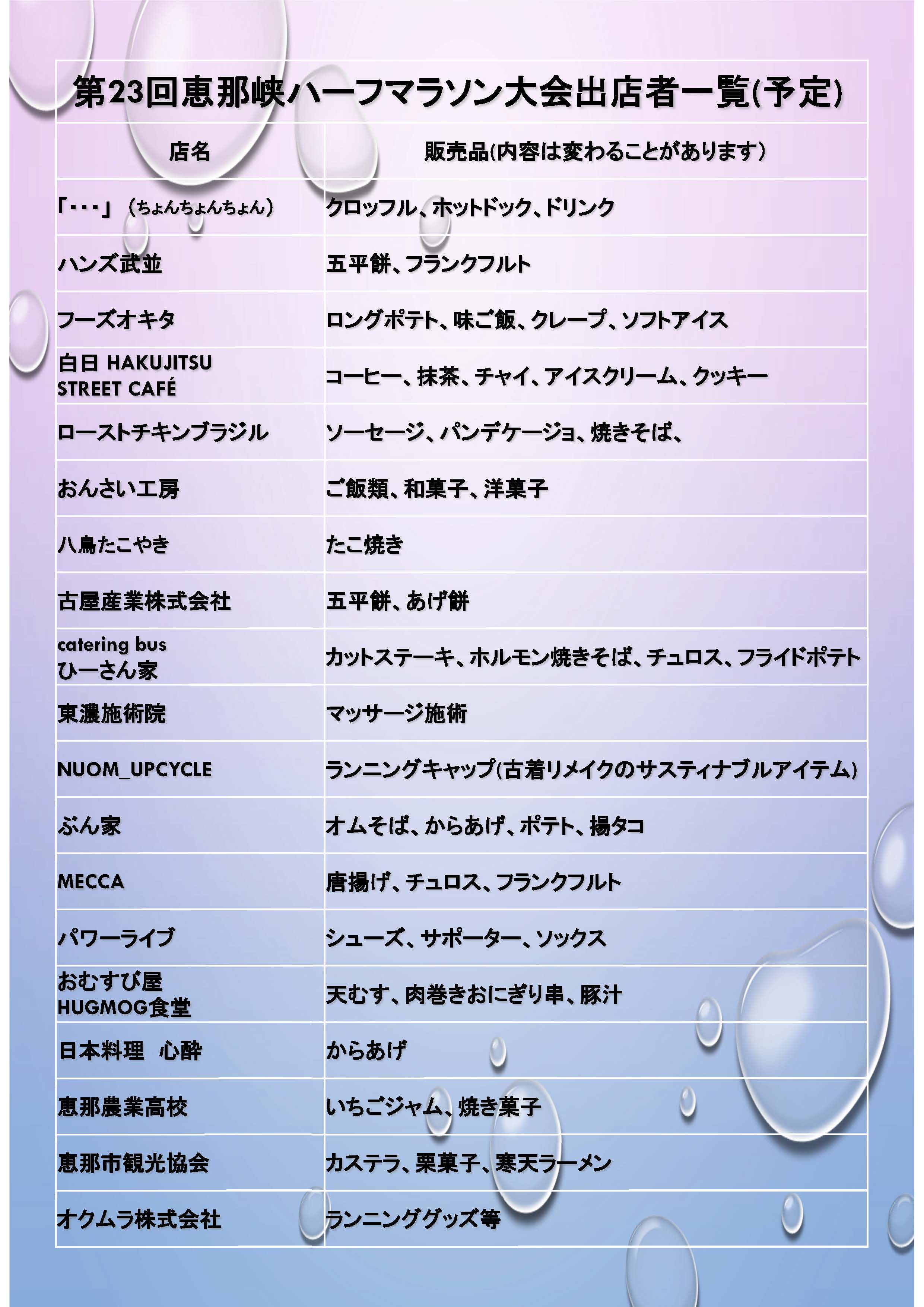 本大会に出店いただく店舗が決定しました。(予定一覧)